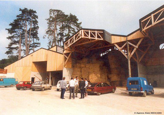 Ce bâtiment de stockage s'inscrit dans le cadre paysager du lycée agricole. Il est implanté contre un bâtiment d'élevage. La structure bois de l'édifice est posée sur un soubassement en béton banché. La charpente en poutre treillis en bois supporte une couverture en fibro-ciment de teinte noire avec joues retombantes qui souligne le volume et assure un lien visuel avec l'environnement.